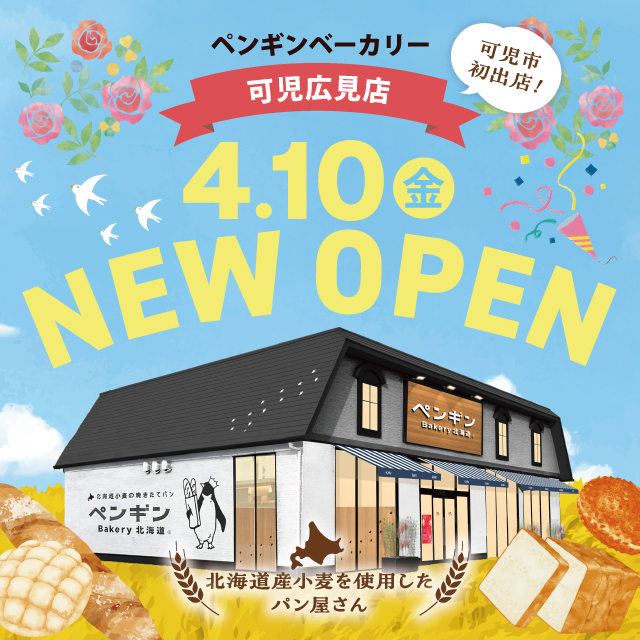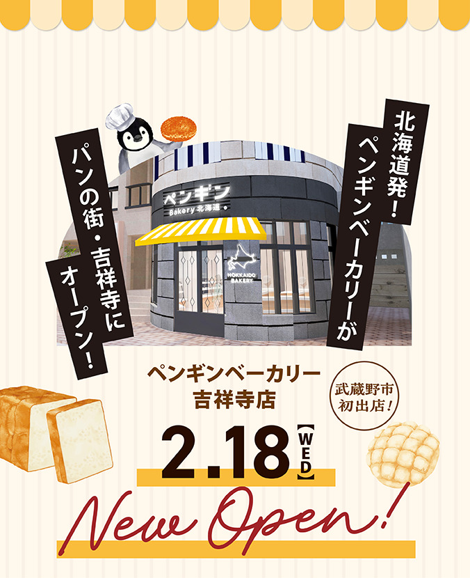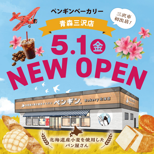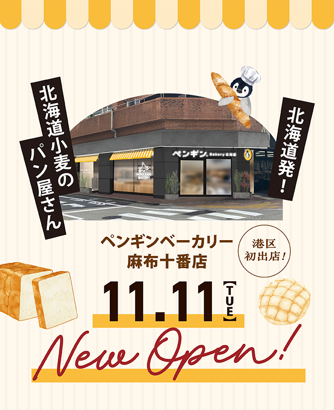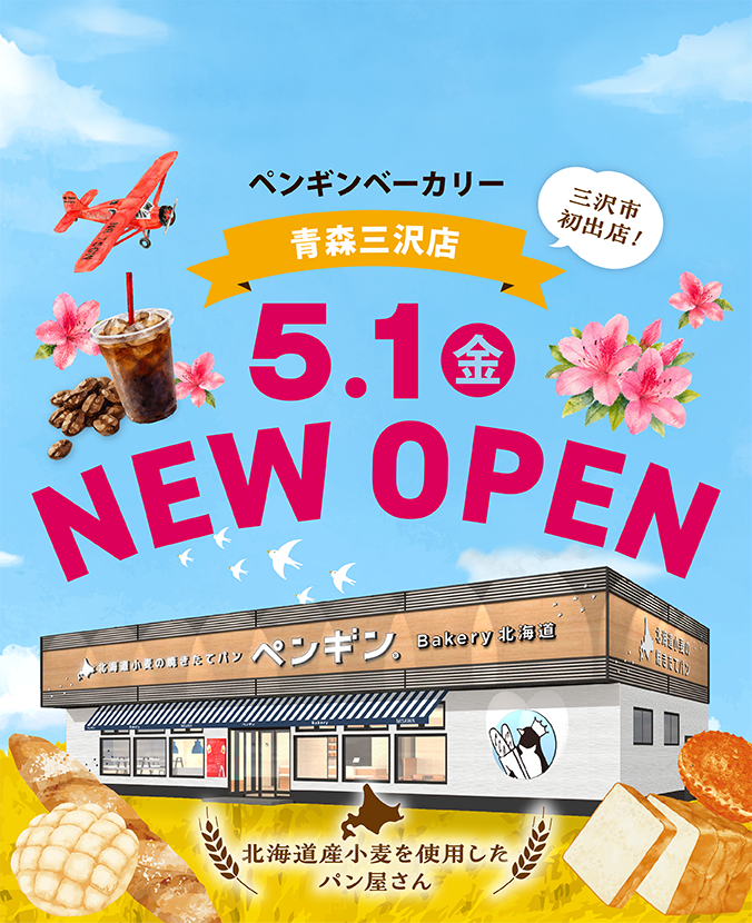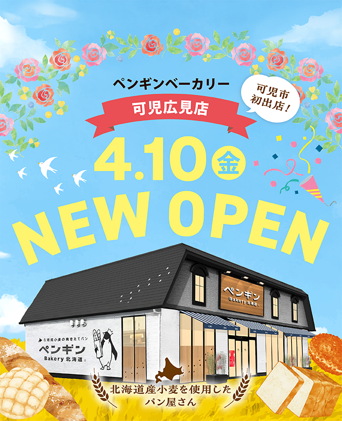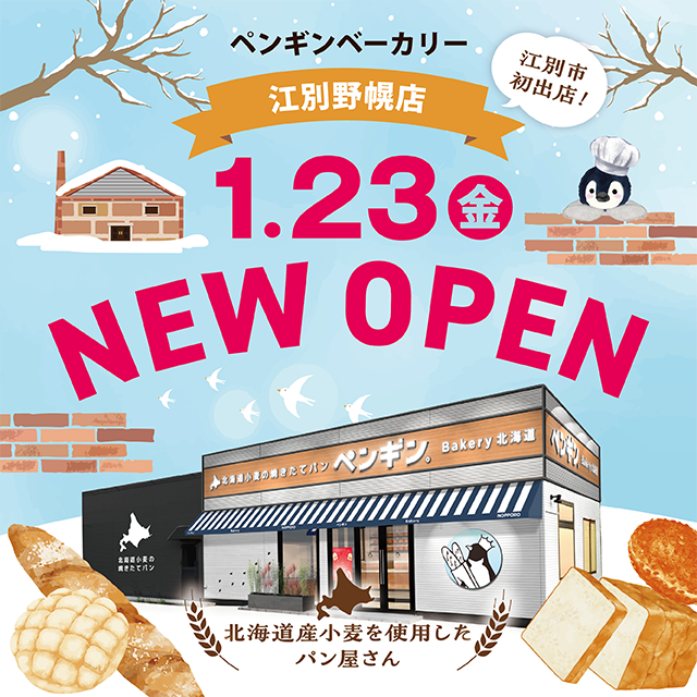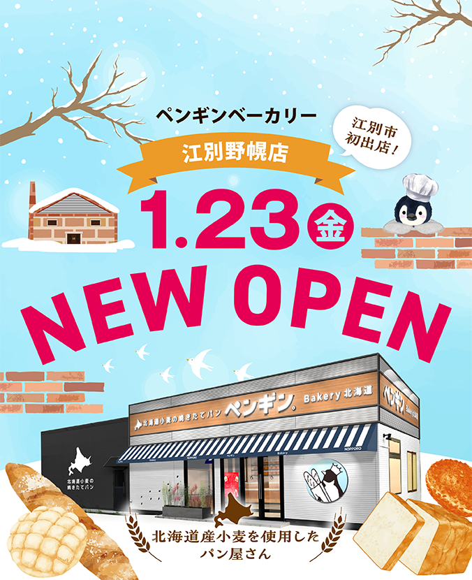 ペンギンベーカリーは「北海道の大地で育った小麦を使い、子どもからお年寄りまで毎日食べていただけるパン屋さん」をコンセプトに立ち上げたベーカリーです。2016 年5月、北海道恵庭市に1号店が誕生。北海道産小麦をメインに、安心・安全なパンを届けることを心がけています。