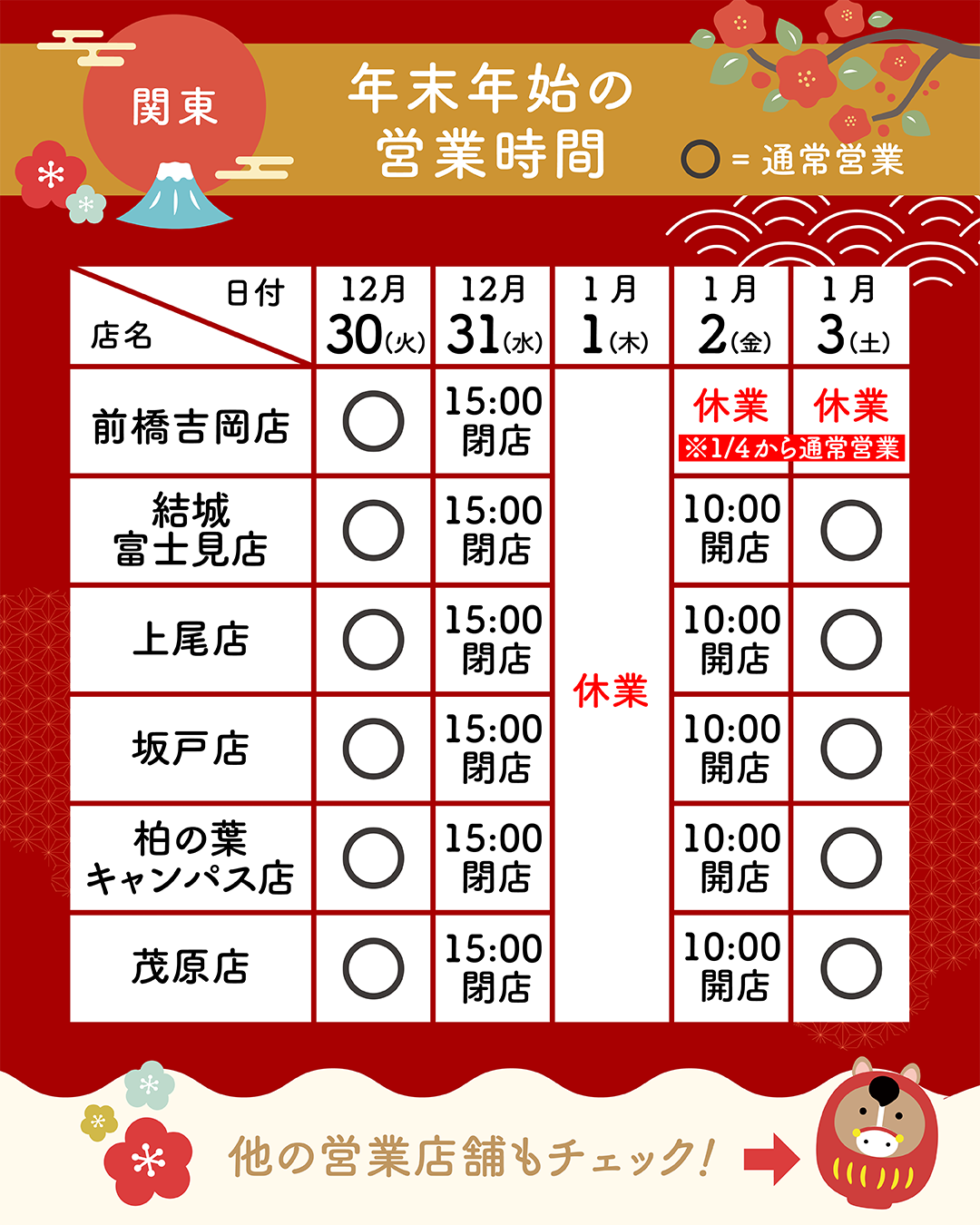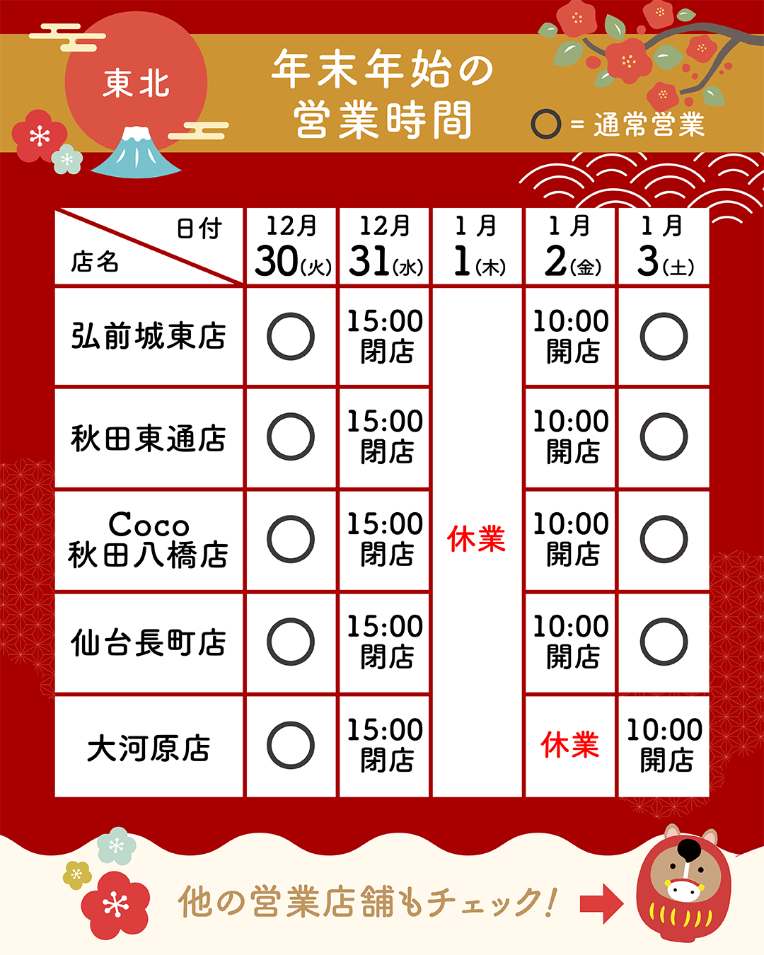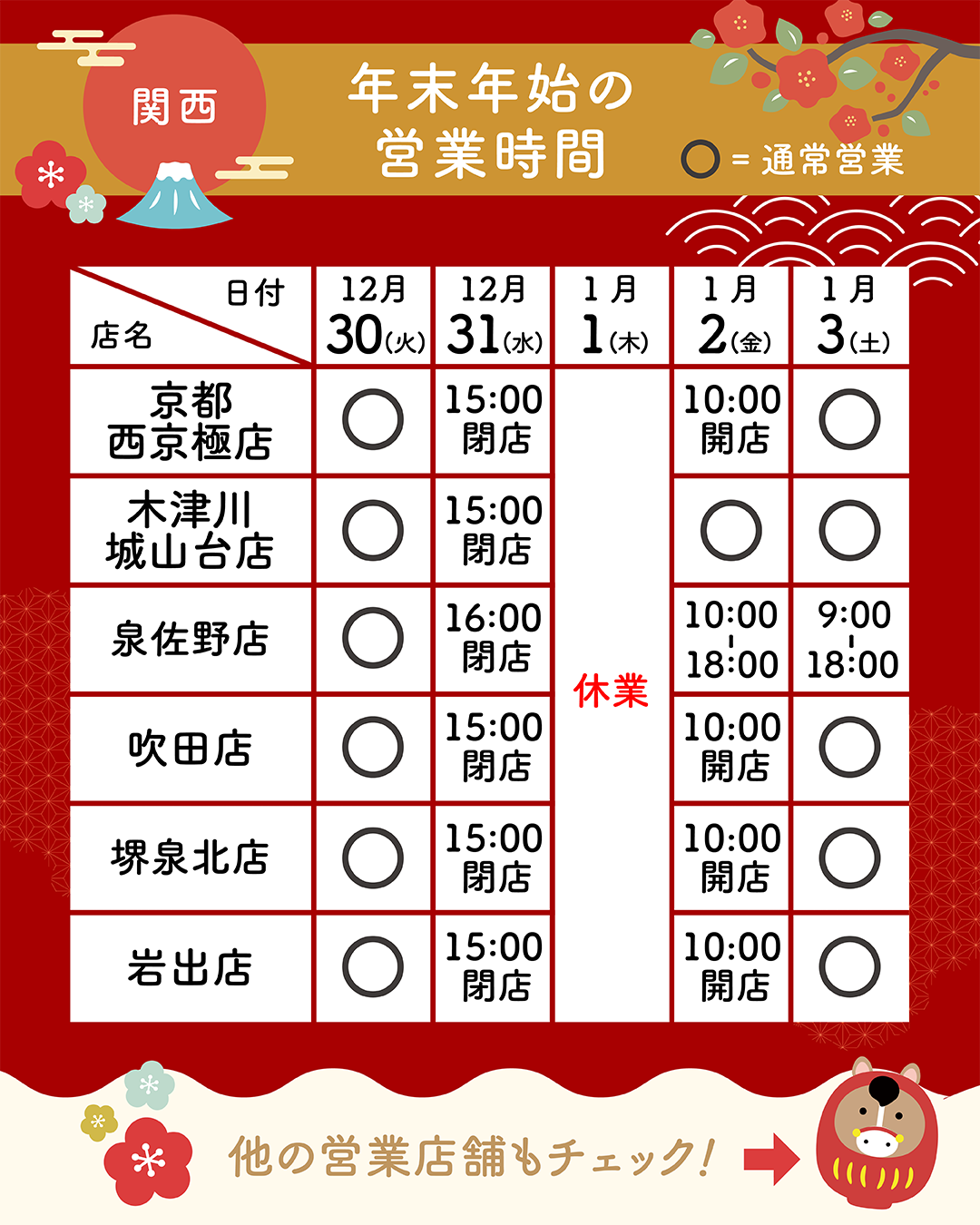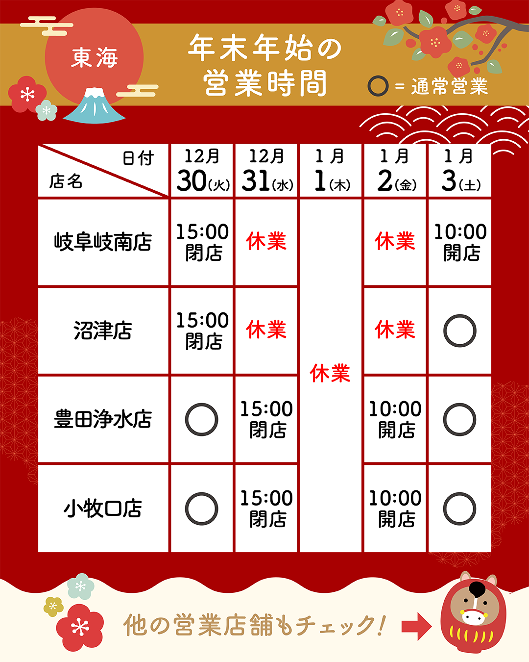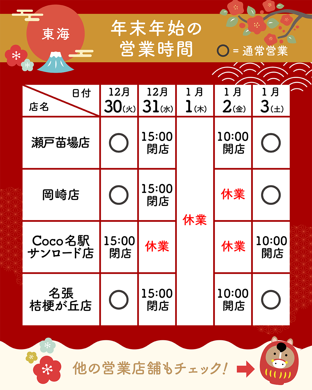 ※店舗により年末年始の営業時間が異なります。