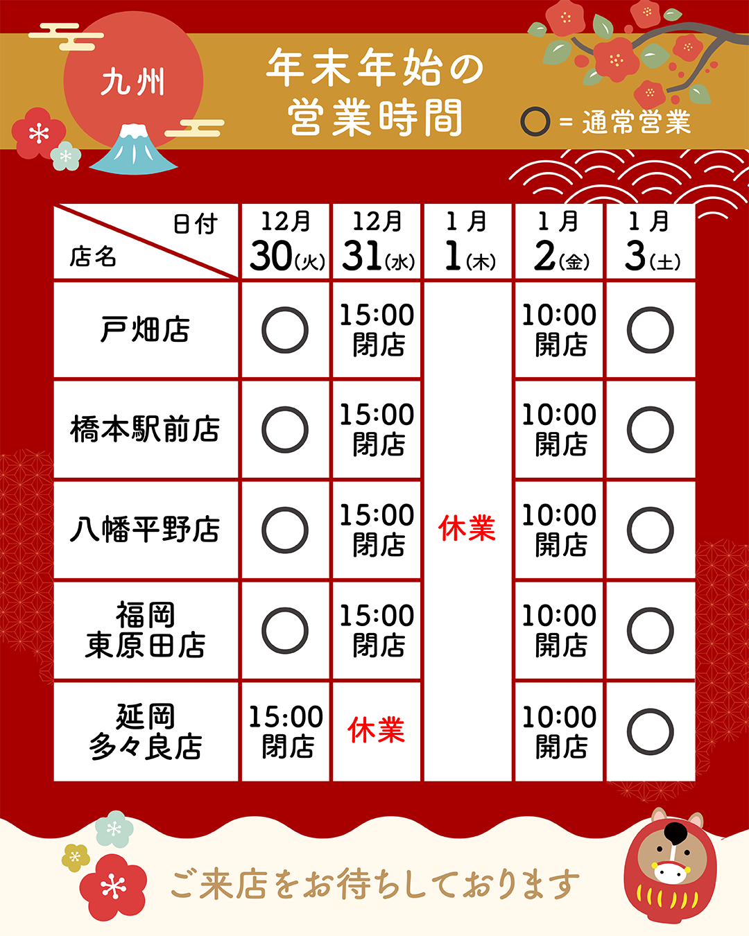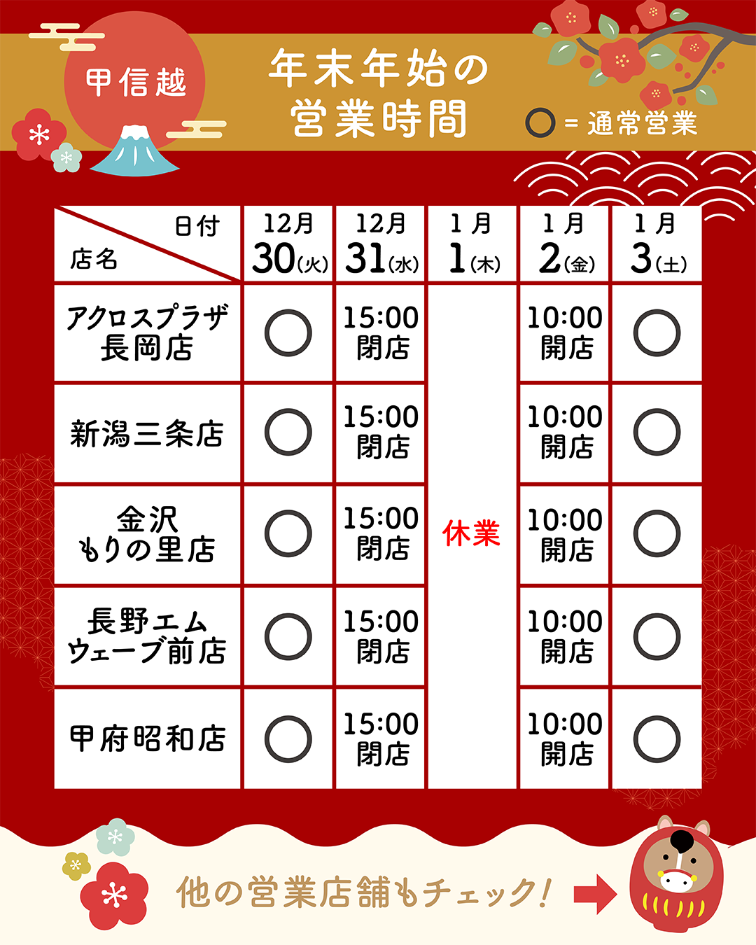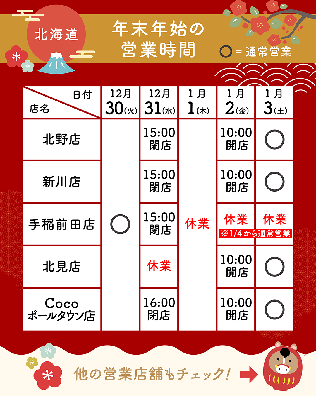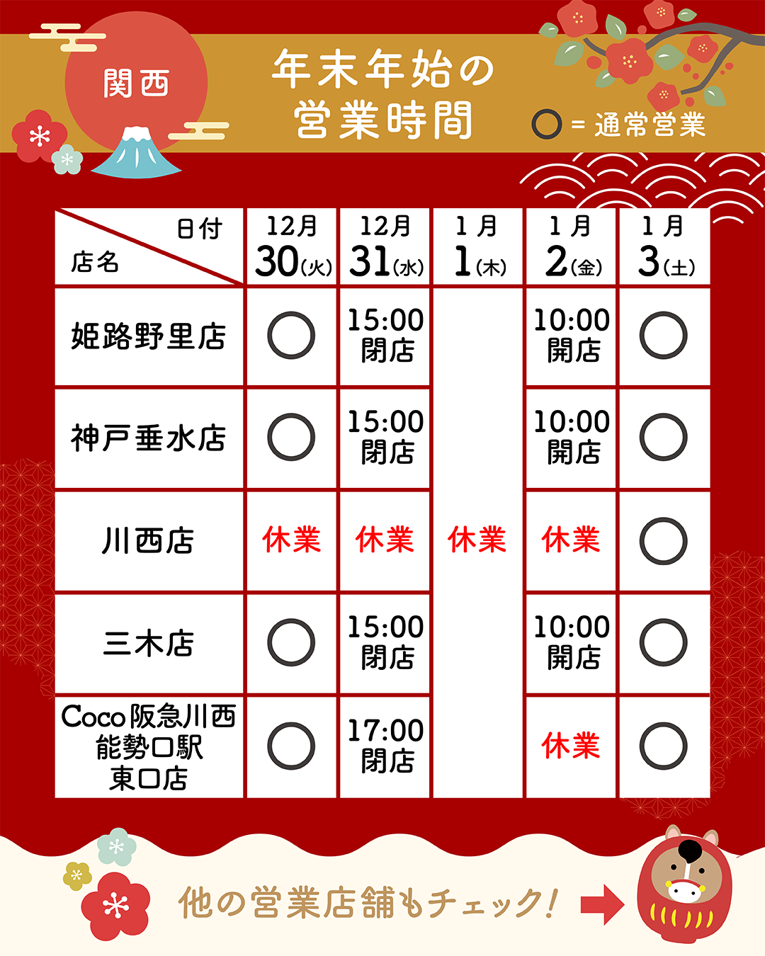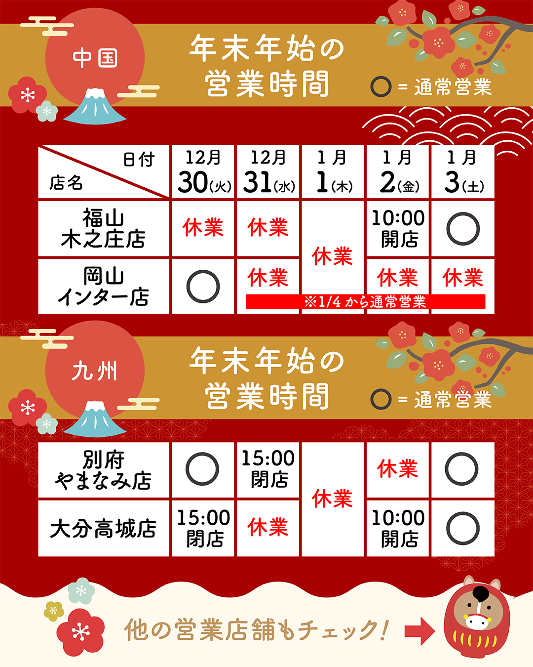※店舗により年末年始の営業時間が異なります。